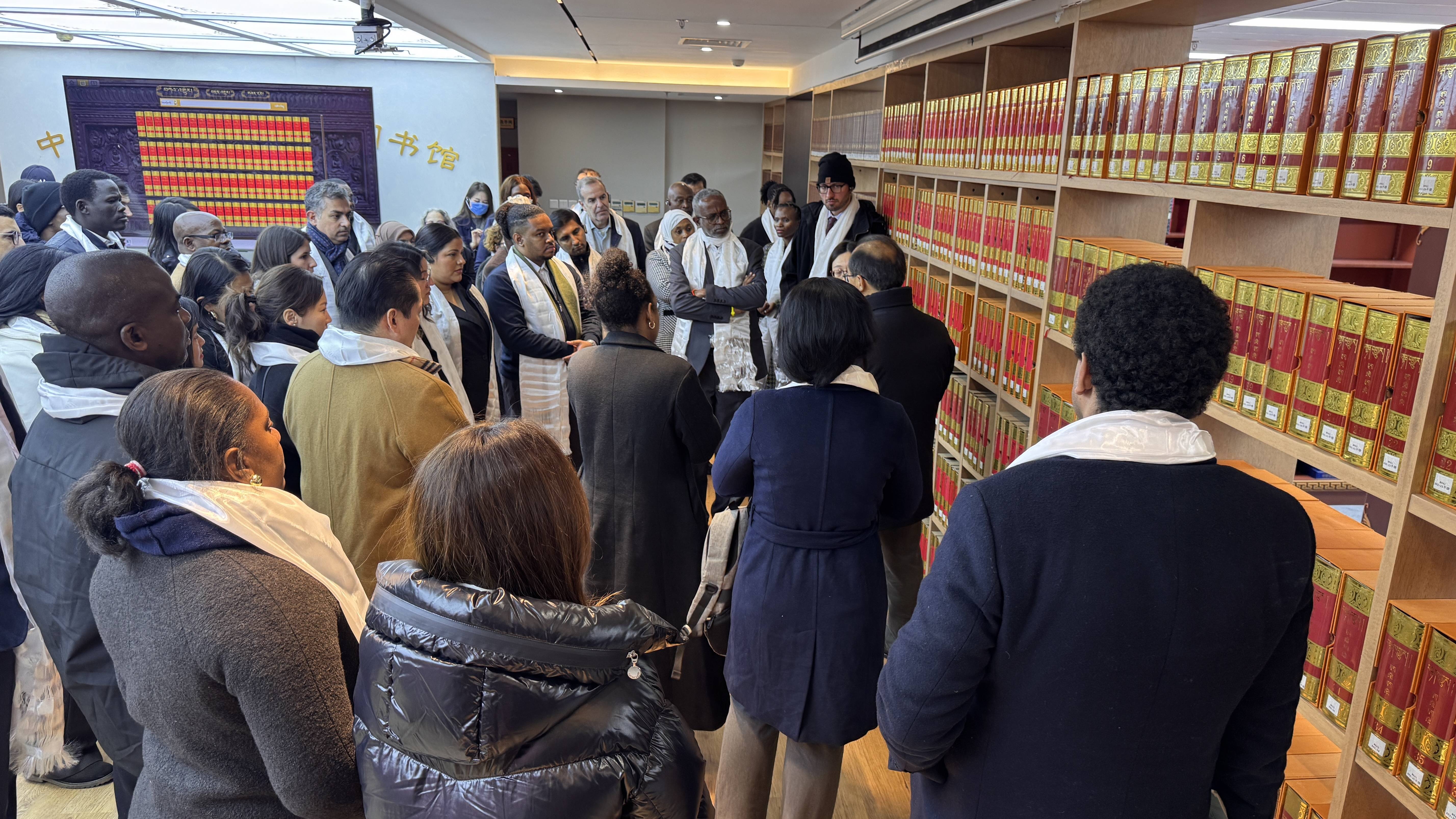 12月9日,40多名各国政府代表、驻联合国外交官和联合国人权高专办官员在中国藏学研究中心图书馆参观。新华社记者 孙楠 摄凯尔文说,本次参访和研修非常有价值,让来自不同国家的人能够分享各自的社会文化视角与人权实践。人权具有普遍性,但大家也应该认识到不同文化背景、法律体系与政策路径带来的多样性。“我们需要的是交流合作,而非强加单一模式。我们应当坐下来对话,倾听彼此的观点,理解不同的立场,从而共同探讨出真正包容、均衡、不伤害任何人的全球性方案。”